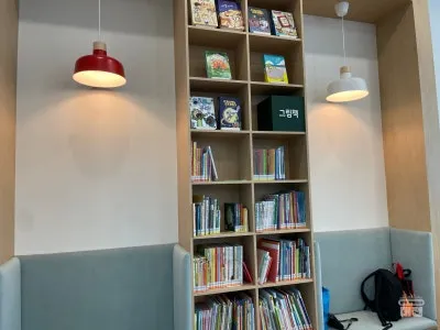 책의 종류는 그림책, 아동서적, 일반도서 등 다양한 종류의 책들이 마련되어 있어 마음에 드는 책을 읽기 편했습니다.