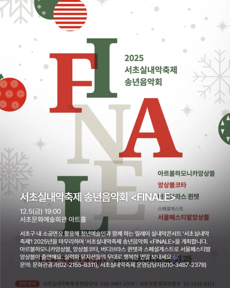 #크리스마스마켓 #겨울방학 #연말공연 #콘서트 #서초실내악축제