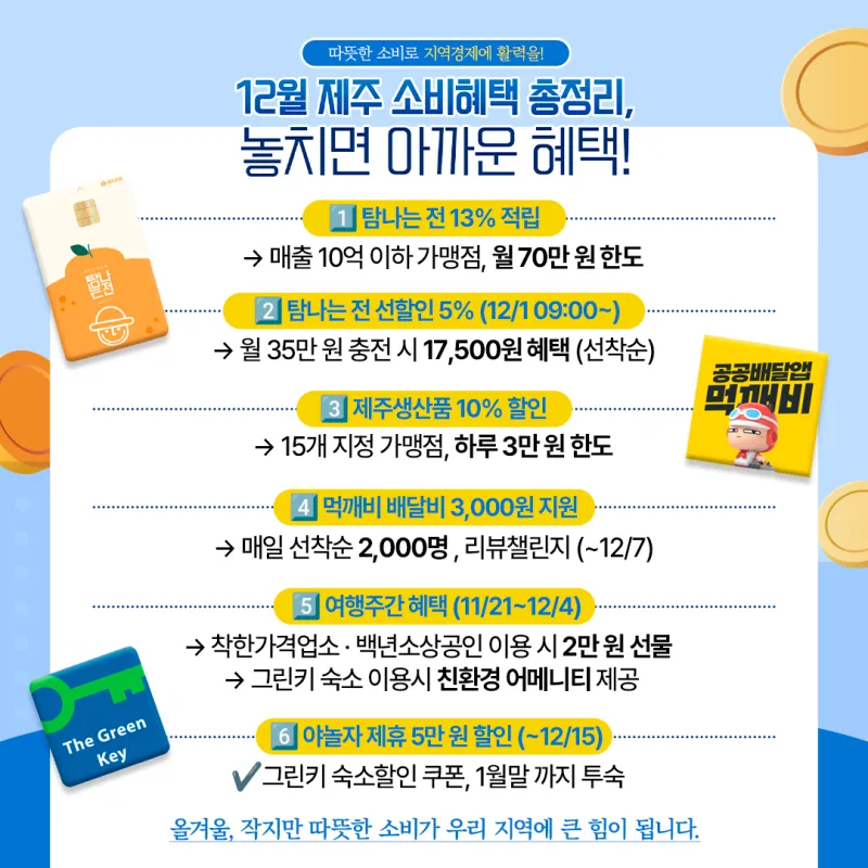 따뜻한 소비로 지역경제에 활력을!"12월 제주 소비혜택 "