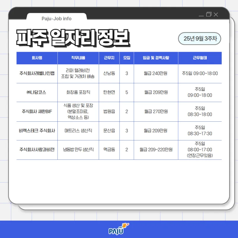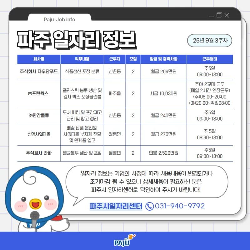 파주시일자리센터로 확인 또는 문의해 주시기 바랍니다.