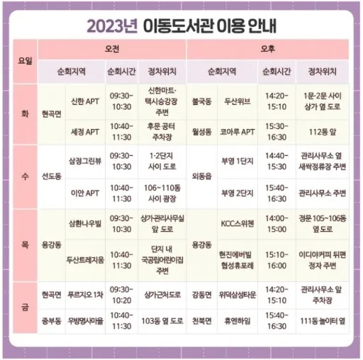 바퀴 달린 도서관은 매주 월요일 쉬구요
