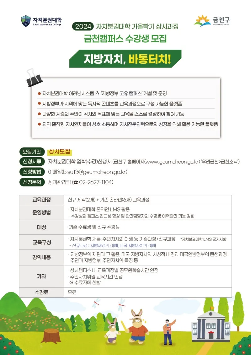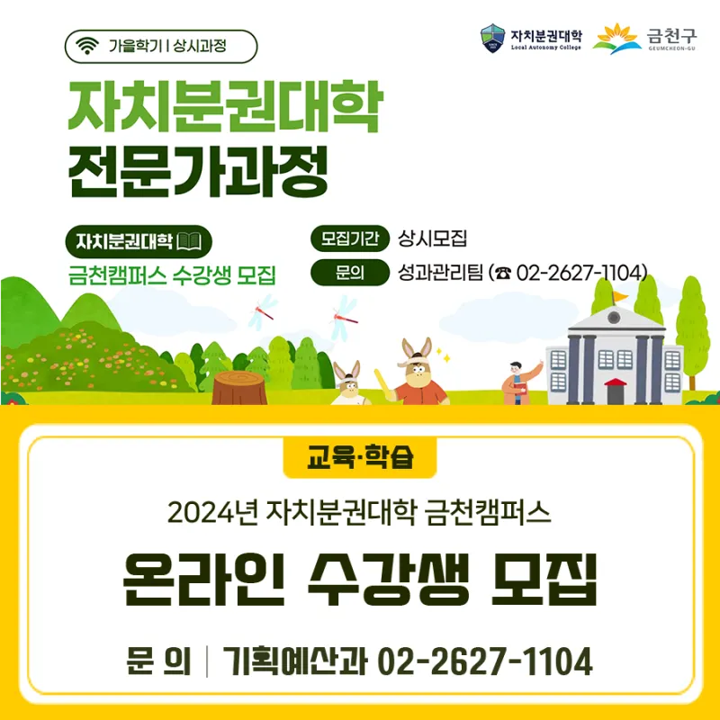 2024년 자치분권대학 금천캠퍼스 온라인 수강생 모집