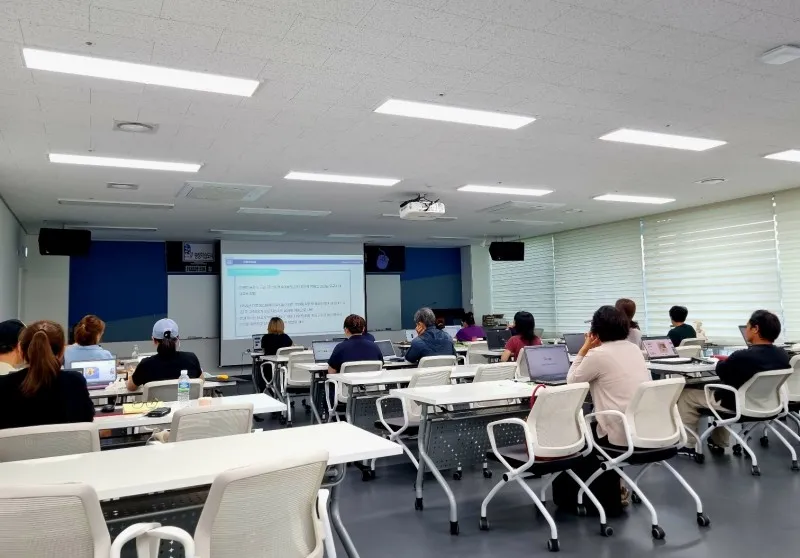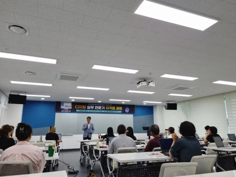 디지털 실무 전문가 자격증 과정의 수업이 진행이 16일은 가을비가 세차게 내리던 날이었습니다. 국지성 호우로 운전이 어려울만큼 비가 많이 내렸던 날이었습니다. 빗속을 헤쳐 도착하였지만, 예정된 시간보다 조금 늦었습니다. 도착하니, 교육장 안은 배움의 열기로 가득차 있었습니다.