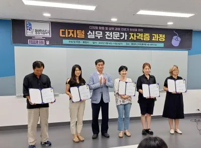 해당과정은 SNS에 입문 과정의 배우고, 시험을 그친 후에 자격증을 수여받는 순서로 진행되었습니다. 저출생시대에 아이와 함께 수업을 들었던 젊은 아빠, 자신의 업체 홍보에 도움을 받고자 참여하신 분, 요즘의 트랜트를 읽고 싶어서 참여하신 분, 자격증을 따기 위해서 참여하신 분 등등 다양한 분야의 통영시민이 함께 하였습니다.