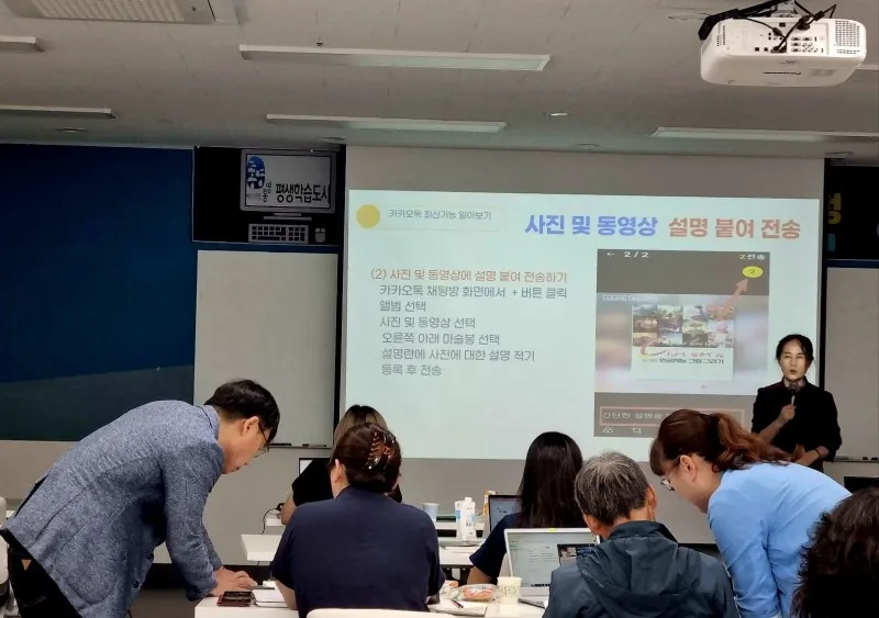 한국이 가장 자주 사용한 앱, 카카오톡의 새로운 기능들에 대해서만 알아가는 시간을 가져봅니다. 조용한 채팅방 기능, 사진 및 동영상 설명 붙여 전송하기 기능, 채팅방 조용히 나가기 기능, 채팅방 글에 공감하기 기능, 외국어 번역하기 기능, 채팅방 예약 발송하기 기능, 현금영수증 자동 발행 기능 등등에 대해서도 직접 실습을 하면서 알아가며 배워갑니다. 실습중에는 도와주는 선생님들이 계셔서 어려움없이 진행할 수 있었습니다.