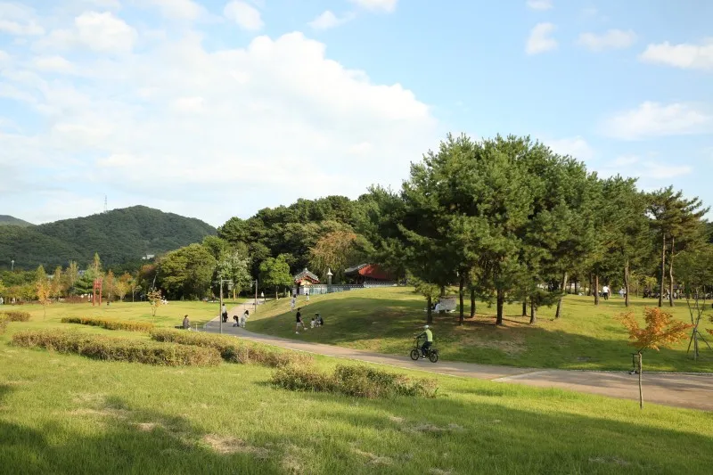지난 한글날 휴일을 맞아 송산사지근린공원을 다녀왔는데요. 환상적인 가을날을 즐기는 시민분들이 정말 많이 나와 계시더라고요. 잔디밭 나무 그늘마다 돗자리와 캠핑용 테이블을 가지고 나와 편안한 휴일을 즐기는 모습이 너무 여유로워 보였어요.