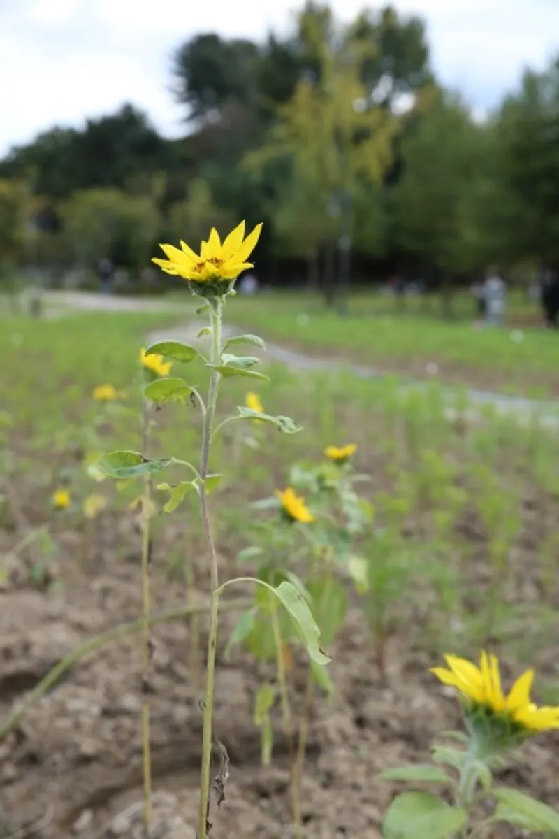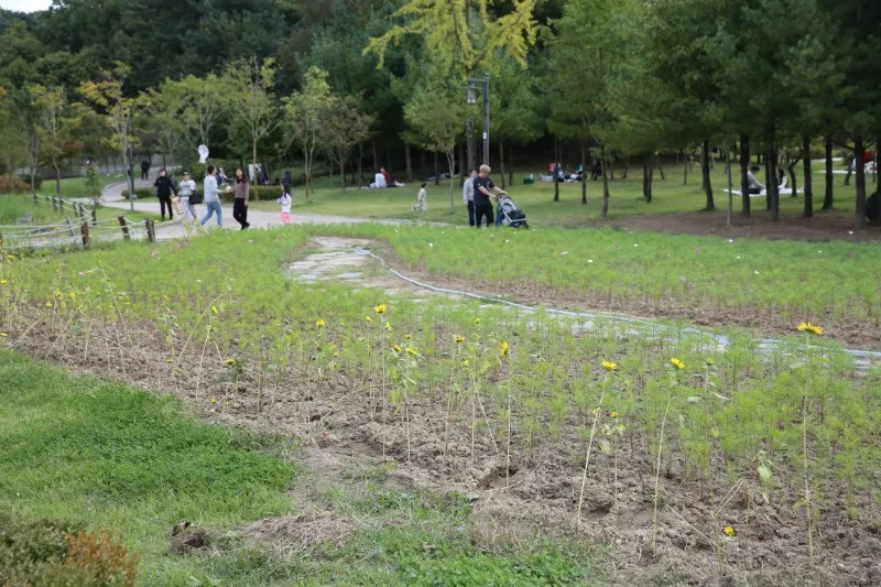 송산사지 근린공원은 계절에 따라 다양한 꽃밭을 조성하는데요. 봄에는 튤립을 조성해서 이미 ‘의정부 튤립 명소’로 이름이 나 있어요. 지금은 코스모스를 심었더라고요. 그런데 코스모스가 아직은 덜 피어서 조금 휑한 느낌이 많이 났어요. 조금 일찍 심었더라면 좋았을 것을 하는 아쉬움이 남더라고요. 내년에는 핑크 뮬리와 댑싸리도 보였으면 좋겠습니다.