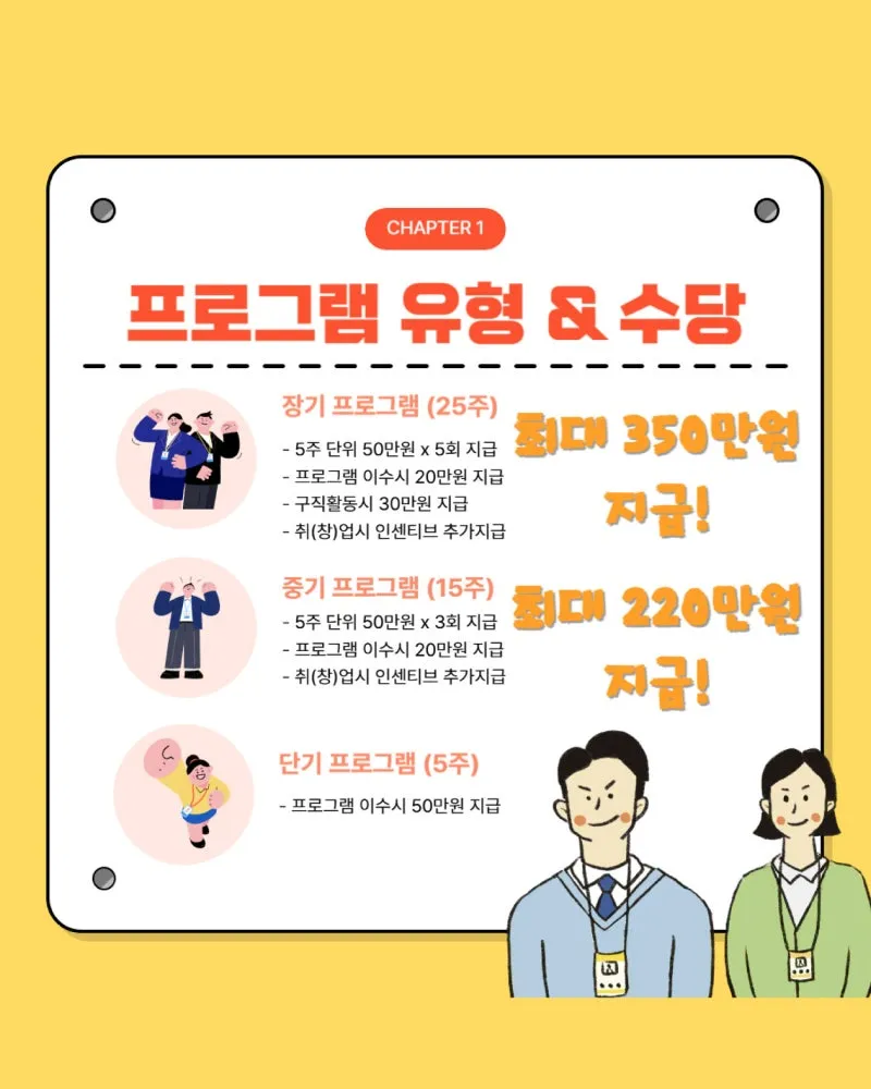 🔸 장기(25주) : 최대 350만원 지원