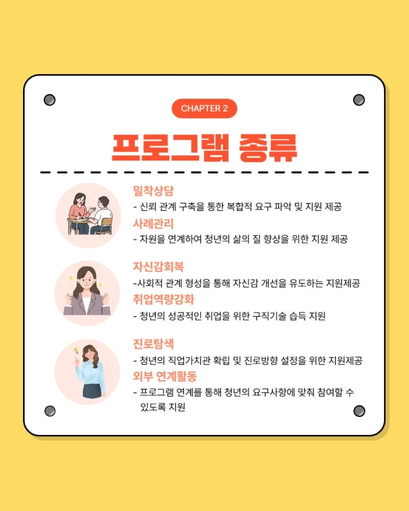 ✔ 자신감 회복 · 취업역량 강화 · 진로탐색 프로그램 운영