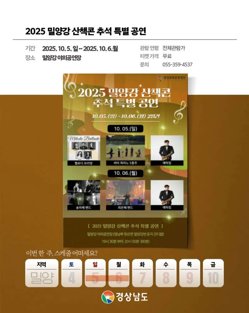 [밀양]2025 밀양강 산책콘 추석 특별 공연