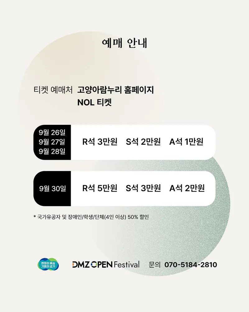9월 19일(금) 📍파주 캠프 그리브스 탄약고 ※민간인 통제구역 특성상 시간 및 장소 변경 또는 영상 촬영으로 진행될 수 있습니다. |