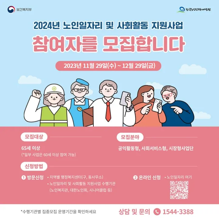 2024년 노인일자리 및 사회활동지원사업 참여자 모집
