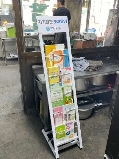 건강관리 내용을 인쇄한 앞치마나 관련 리플릿을 가게에 비치하기도 하고요.