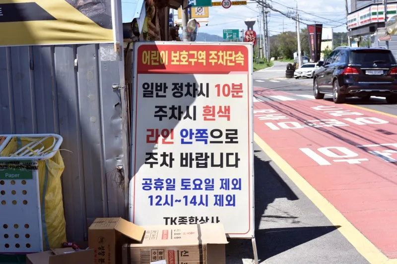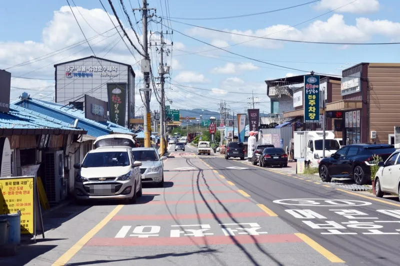 동곡 칼국수 거리는 일반 정차 시 10분, 주차 시 흰색 라인 안쪽으로 주차해야 하고,