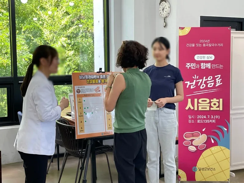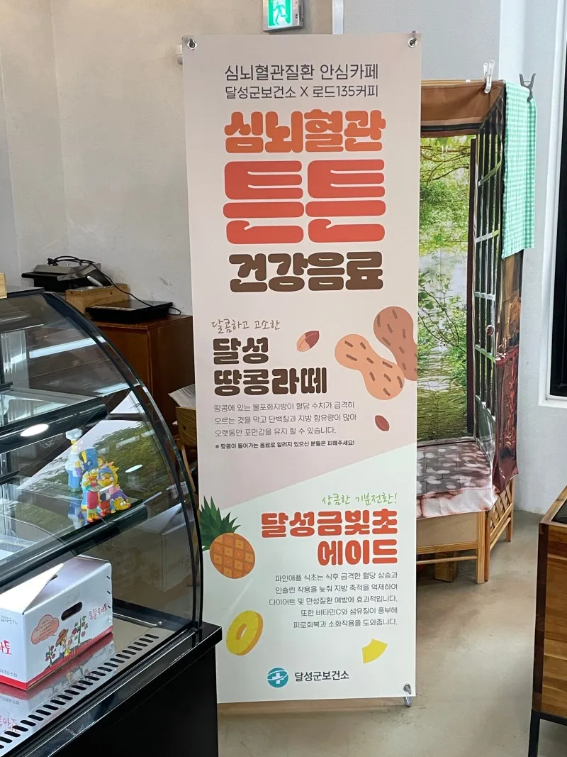 일례로 달성군보건소 영양사와 심뇌혈관질환 안심카페인 ‘로드135커피’ 바리스타는 심뇌혈관질환 예방관리에 도움이 되는 재료인 파인애플 식초, 땅콩을 활용한 카페 음료 개발해 판매 중입니다