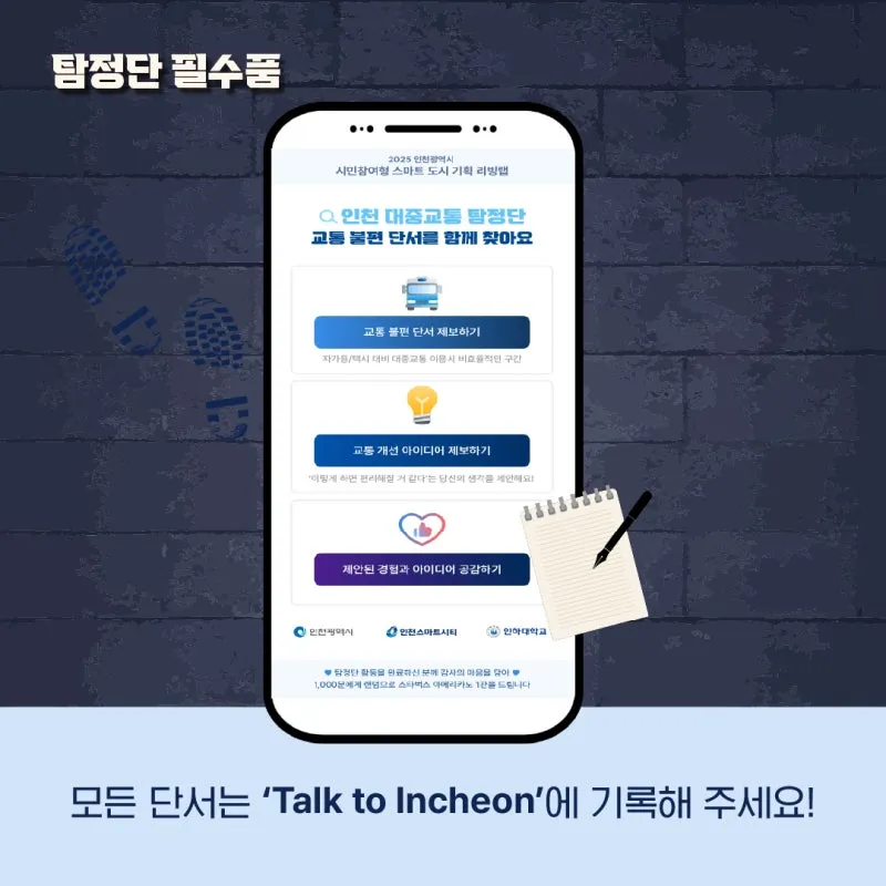 인천시 교통 불편 단서를 제보해주세요! 2025 인천시 교통 탐정단 모집!