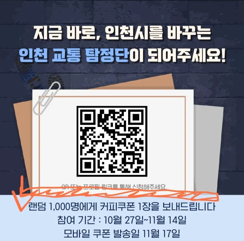 지금 바로, 인천시를 바꾸는 인천 교통 탐정단이 되어주세요! |