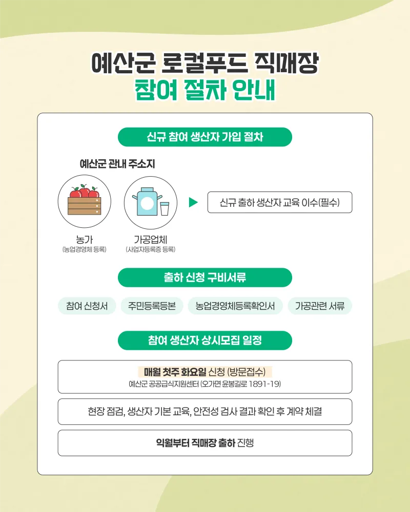 ✅예산군 로컬푸드 직개장 참여 절차 안내