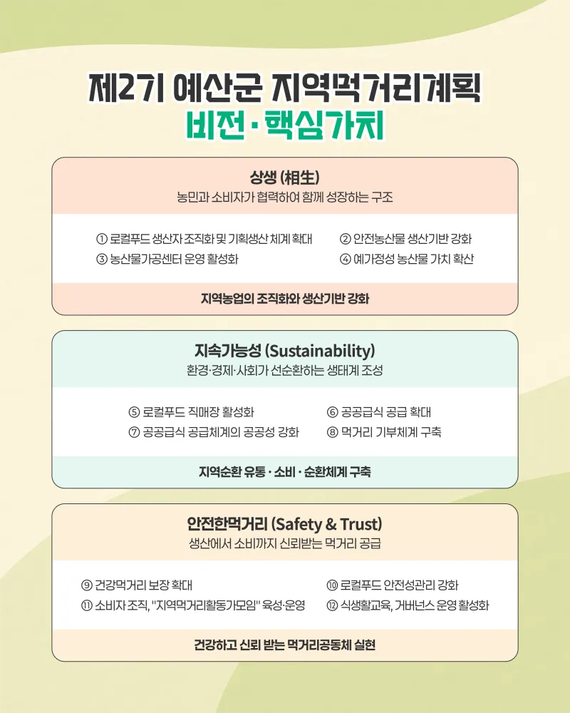 ✅제2기 예산군 지역먹거리계획 비전·핵심가치