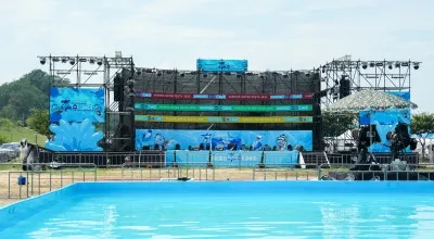 핵심 무대와 함께 그 앞에 위치한 대형 수영장의