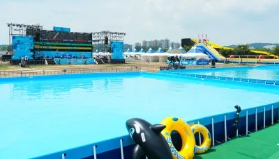수영장 옆에는 공연 무대가 설치되어 있어