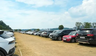 낙동강변에 위치한 넓은 전용 주차장으로