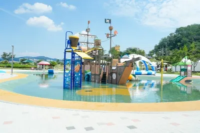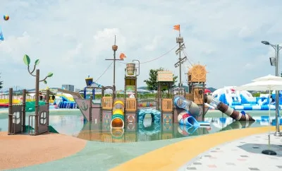 해적선을 모티브로 한 대형 워터플레이 시설과