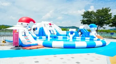 대형 워터 에어바운스와 초대형 워터 슬라이드,