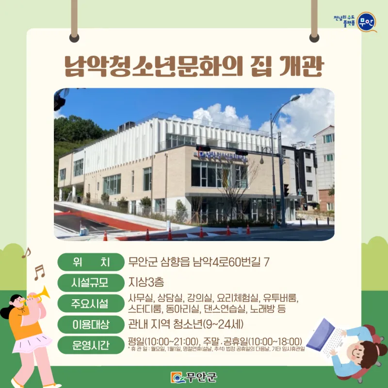 {"title":"청소년을 위한 남악 청소년 문화의 집 개관 !!","source":"https://blog.naver.com/muan5231/223272718303","blogName":"무안군 공..","blogId":"muan5231","domainIdOrBlogId":"muan5231","logNo":223272718303,"smartEditorVersion":4,"meDisplay":true,"lineDisplay":true,"outsideDisplay":true,"cafeDisplay":true,"blogDisplay":true}