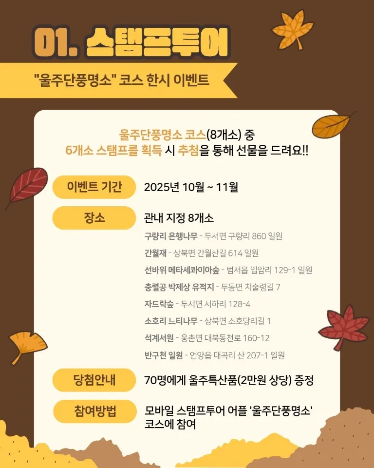"울주단풍명소" 코스 중 2개소 이상 방문한 관광객에게