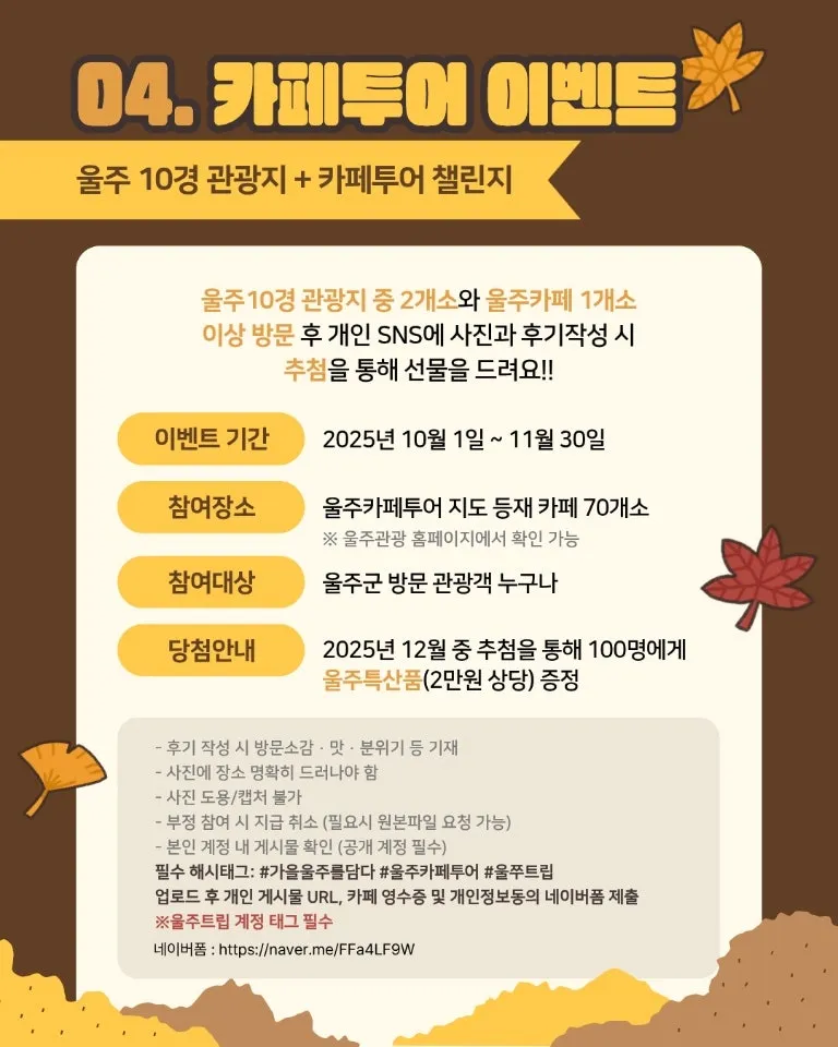 스탬프 투어 "울주단풍명소" 코스 + 카페투어 챌린지