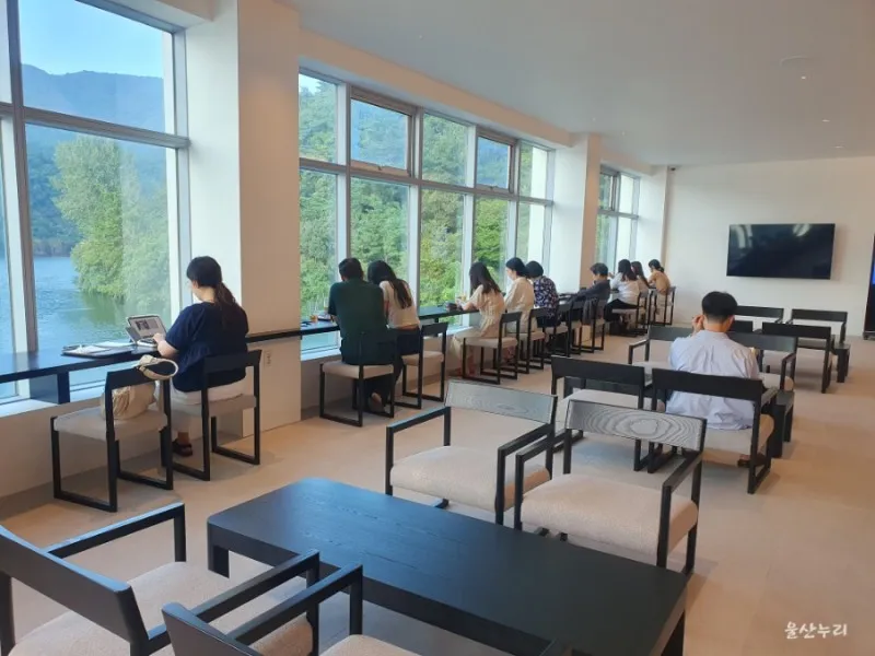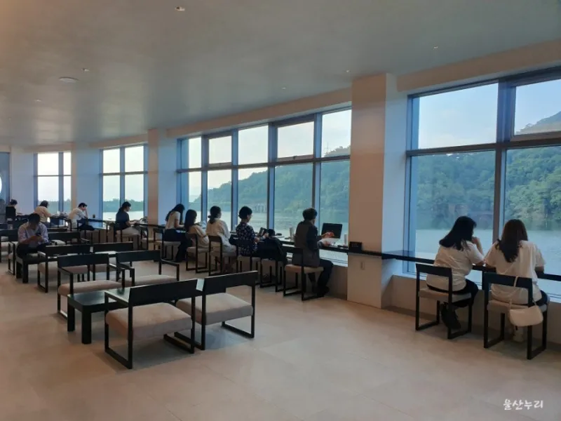 이미 울산의 mz세대들에게 핫플레이스로 입소문이 났나 봅니다 ㅎㅎ 역시나 호수뷰가 보이는 창가자리가 인기가 많네요.