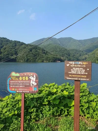 박상진호수공원 입구 산책로에 설치된 이 귀엽고 알록달록한 바람개비는 마을교부세 사업으로 북구청 공원녹지과의 협조로 송정동 주민자치회에서 마을사업으로 설치한 시설물이라고 합니다.