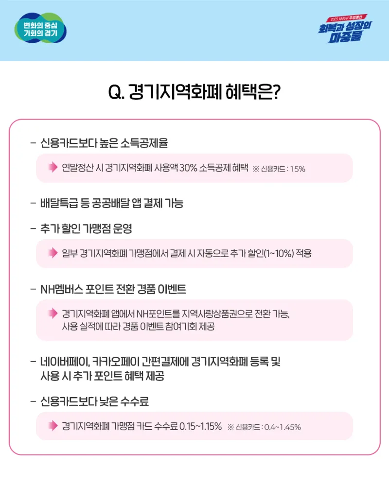 ☑️추가 할인 가맹점 운영 일부 경기지역화폐 가맹점에서 결제 시 자동으로 추가 할인(1~10%) 적용 |