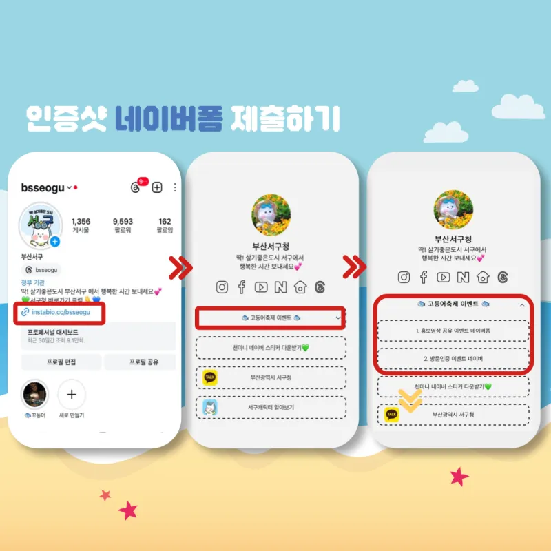 1) 부산서구 공식계정 팔로우 · 게시물 좋아요 클릭!