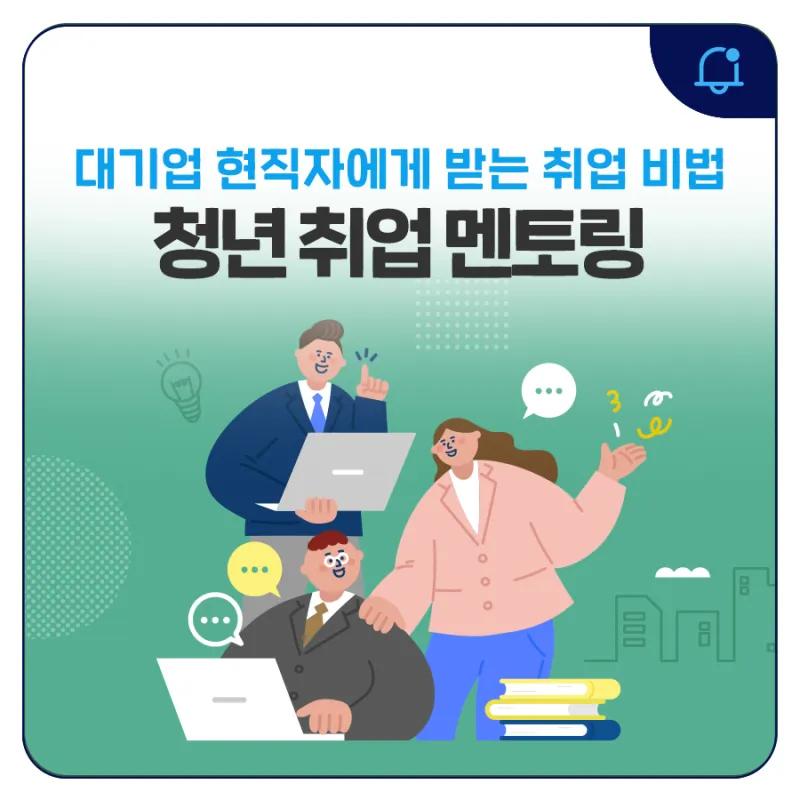 청년들이 '가장 큰 도움이 되는 취업지원 서비스'로 멘토링 등 취업특강을 가장 높은 49.6% 비율로 꼽았다고 합니다!👏