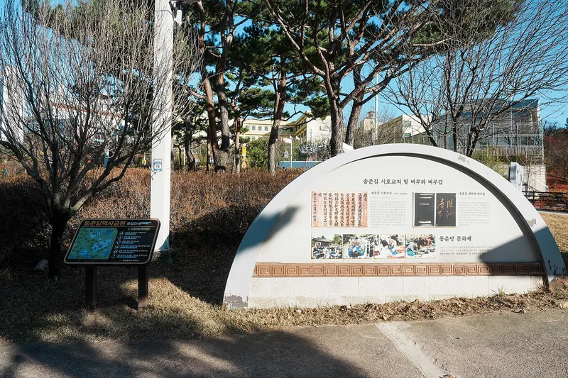 동춘당 역사공원 입구에는 송준길 시호교지와 송준길 선생의 역사를 알아볼 수 있습니다. 동춘당 문화재에 대한 안내가 되어 있어서 공원에 깃들은 배경도 알 수 있습니다.