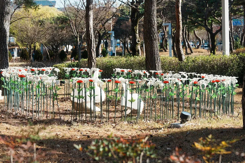 대덕구 동춘당 역사공원 속 다양한 조명 경관 토끼 형상과 붉은 장미를 표현한 공간도 눈길이 갑니다.