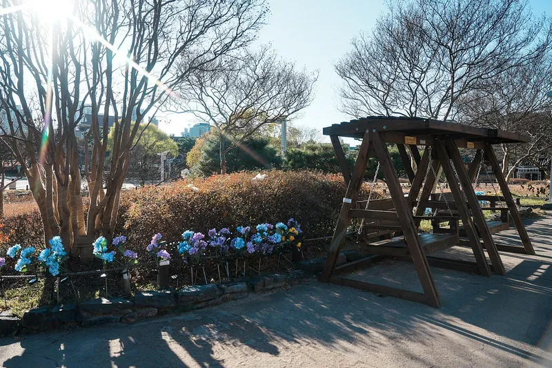 대덕구 소대헌·호연재 고택이 있는 방향으로 걸어가니 흔들 벤치와 그 주변으로 꽃 조형물까지 이어져 있어 겨울의 추위 속에도 꽃길을 걷는 듯한 기분도 일었습니다.