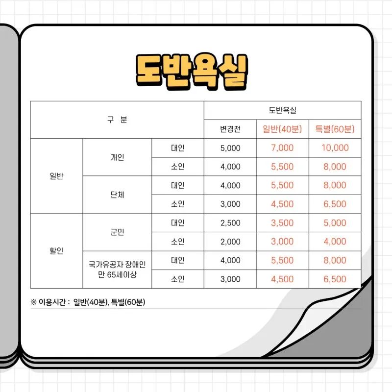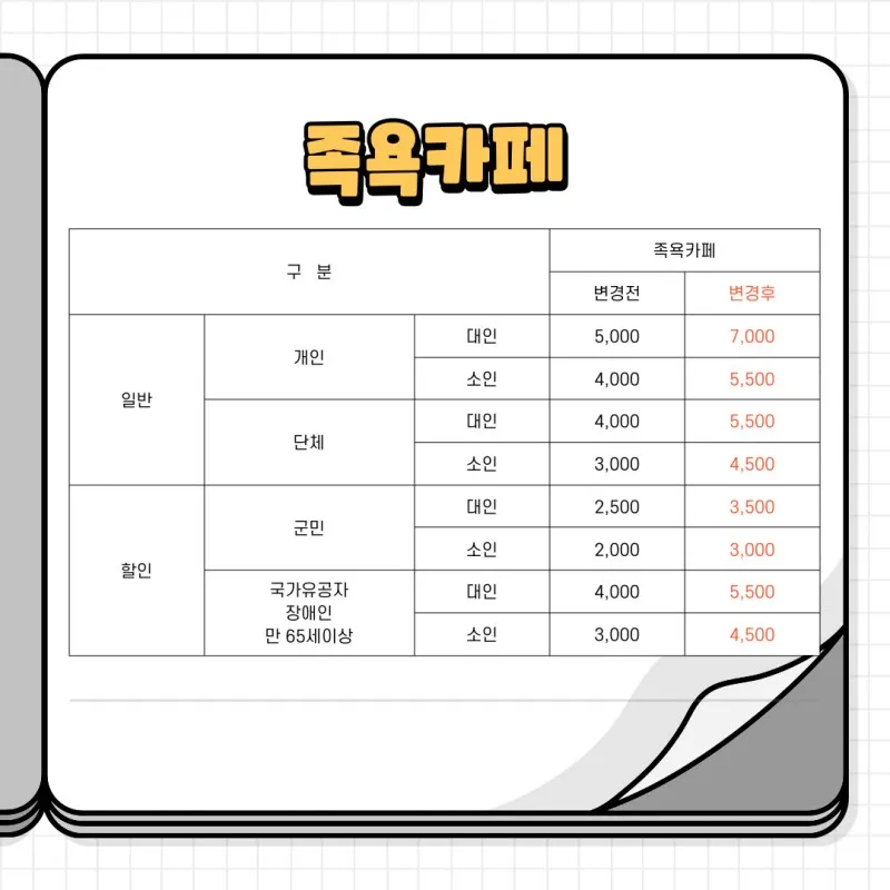 보다 나은 서비스를 위한 강천힐링스파 이용요금 인상안내