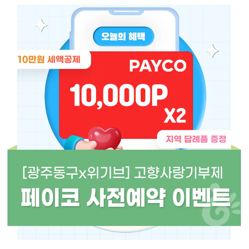 [광주동구x위기브] 고향사랑기부제 페이코 사전 예약 이벤트