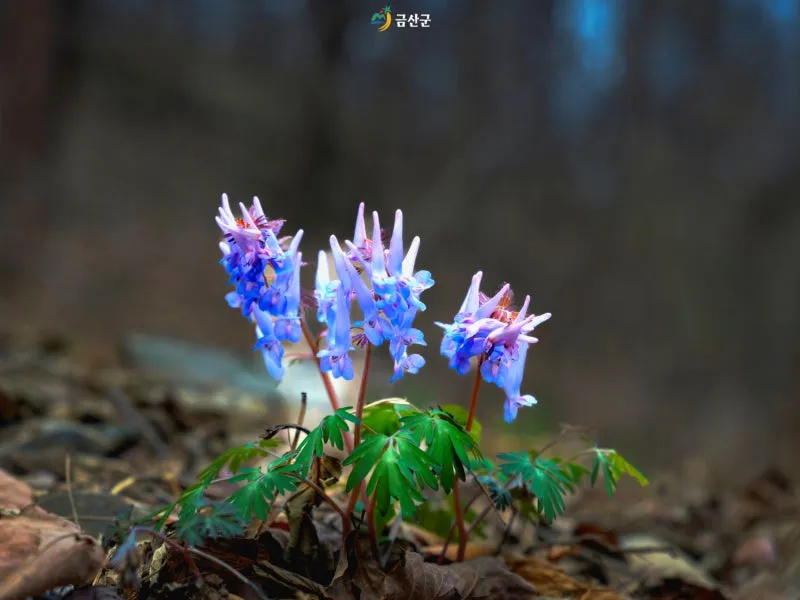 파란색의 현호색을 제일 먼저 만나봅니다.