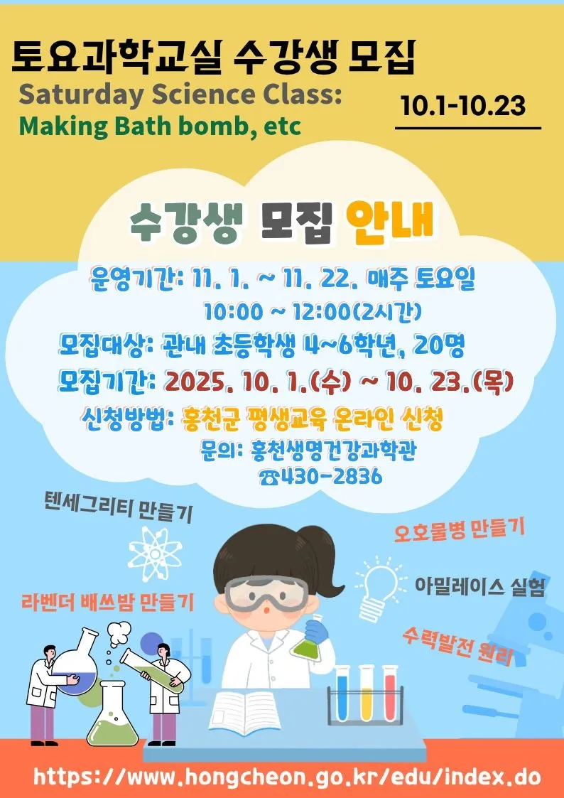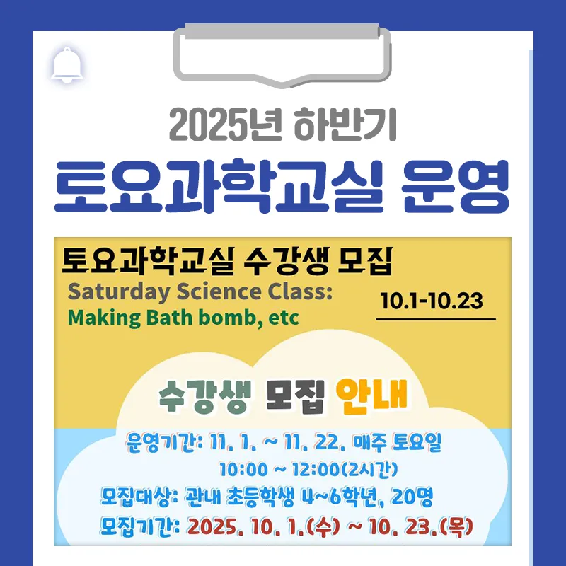 2025년 하반기 토요과학교실 운영 안내드립니다!
