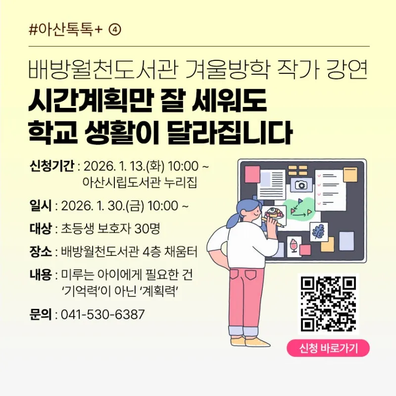 신청 : 2026.1.13.(화)10:00 ~ / 아산시립도서관 누리집
