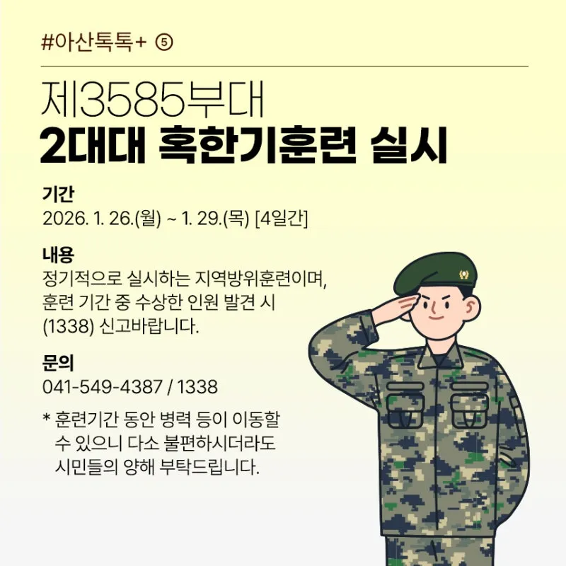 훈련 기간 중 수상한 인원 발견 시 (1338) 신고바랍니다.