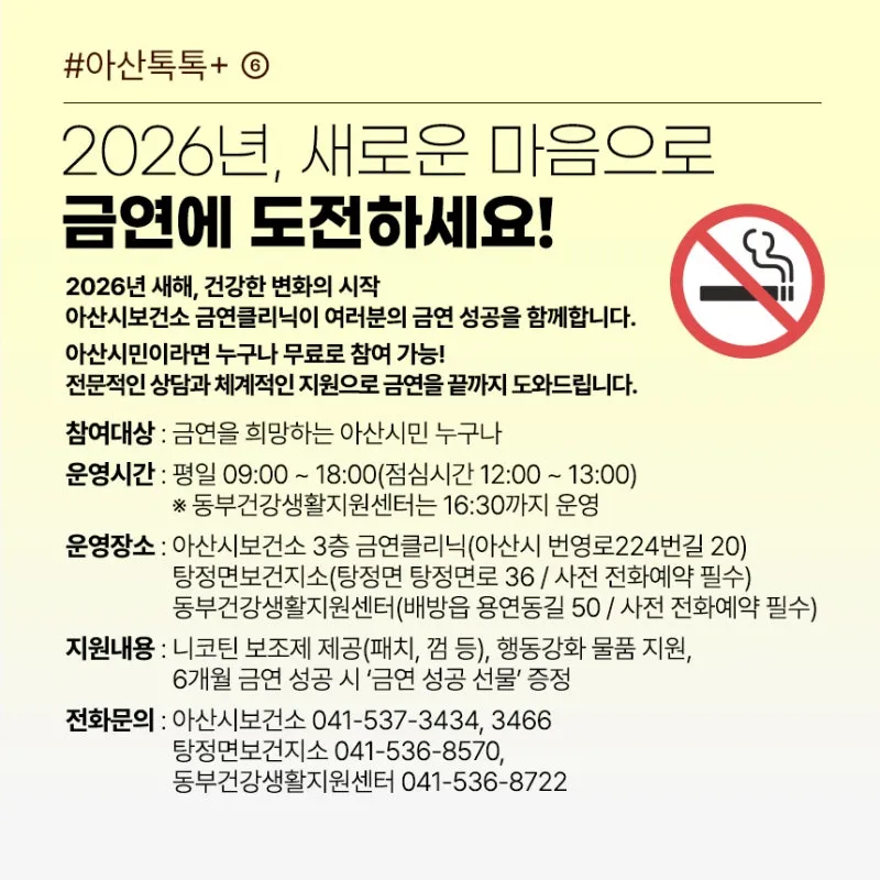 아산시보건소 금연클리닉이 여러분의 금연 성공을 함께합니다.