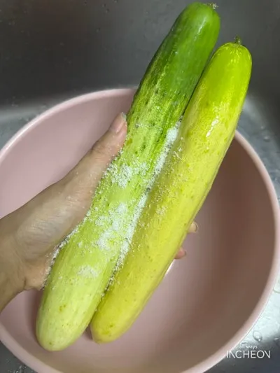 오이는 굵은 소금으로 문질러가며