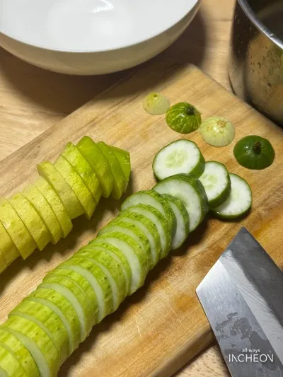 썰어둔 오이, 양파, 대파 등