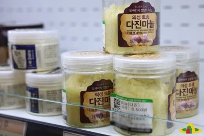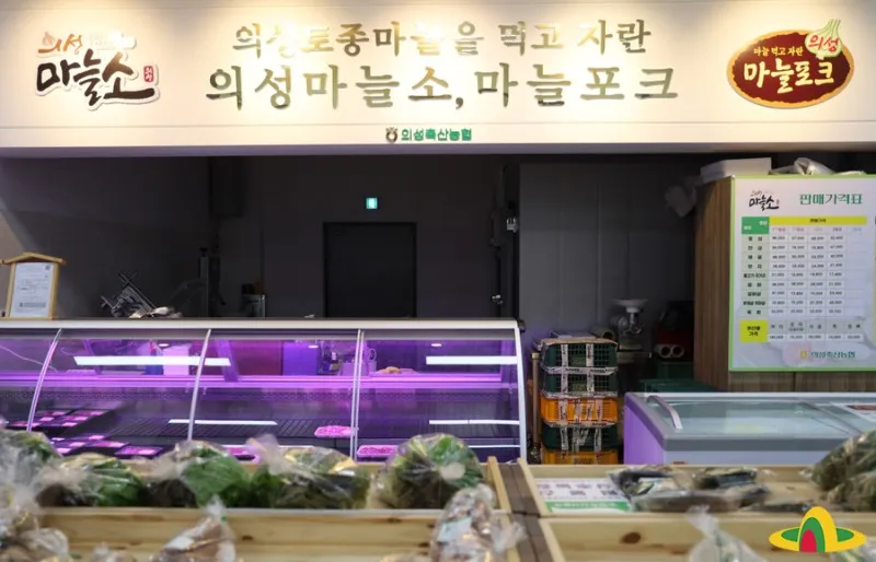 일반적인 농축산물과 의성에서 맛볼 수 있는 특산물과 가공품도 있어서 장보는 재미가 쏠쏠한데요. 의성마늘과 함께 의성마늘소스 간장, 유기농마늘장아찌, 의성마늘로 만든 흑마늘 등도 다양하게 진열되어 있습니다.
