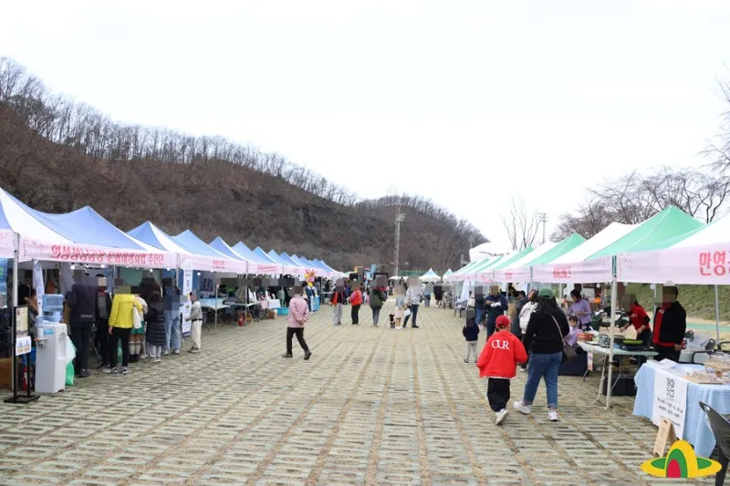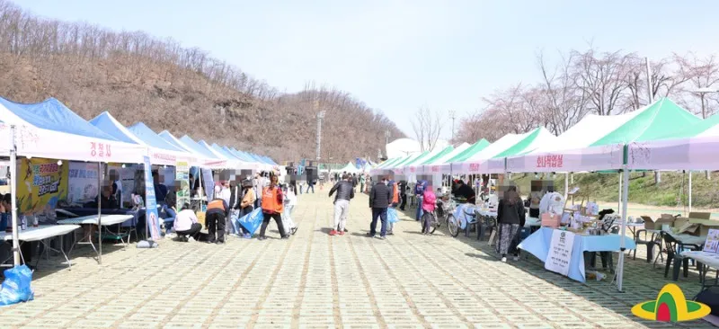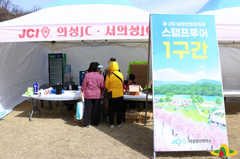 의성군 벚꽃 명소로 손꼽히는 곳, 남대천에는 체험 및 판매, 식당 및 카페, 군 종합홍보, 버스킹존, 주무대, 어린이놀이터, 푸드트럭존 등으로 축제가 북적이고 있습니다.